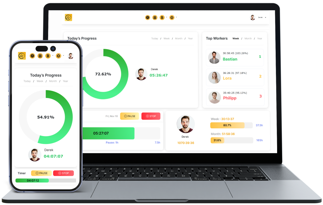 Unser TIMER bietet modernste Technologie zur akkuraten Zeiterfassung. Jede Sekunde Ihrer Arbeitszeit wird genau aufgezeichnet, was Ihnen hilft, Produktivitätsmuster zu erkennen und zu optimieren.